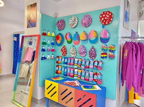 Our store is stuffed to the brim with exciting and well-made products, all produced in Los Angeles, California! Browse our bags, apparel, and accessories, and try on any size you need. Can't find your size? Just ask and we are happy to help. We offer sizes Mini (petite) to 4XL in Unisex and Women's styles. New products are launched every week, so don't be a stranger. Pop in to see what's new! We are open 11:30 am-8:30 pm every day!